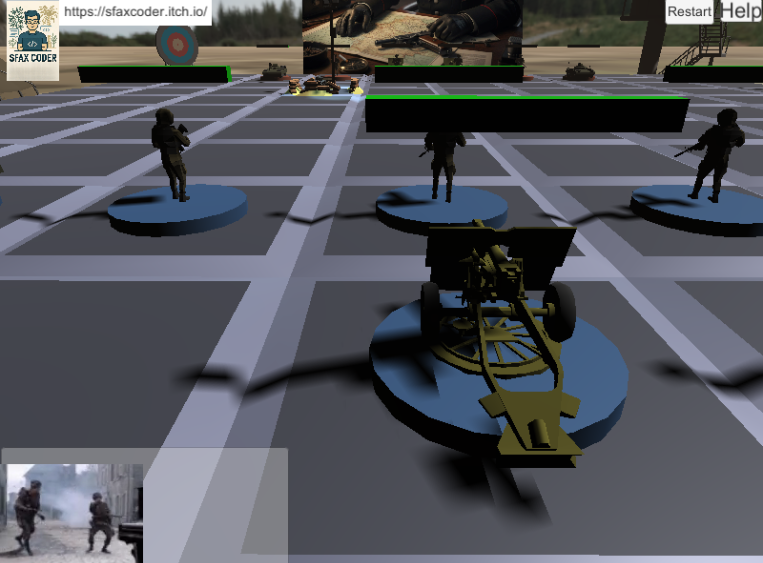 Turn based war game, ww2 theme, on a square grid. imagine chess but with modern units: infantry, tanks, artillery. Still under development i would be happy if i could find anyone willing to help .